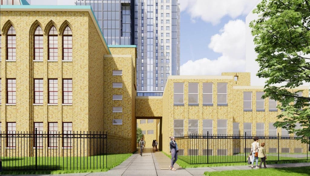 Common amenities will include the conversion of the existing 5,000-sf+ gymnasium into a modern exercise facility which will include the retention one of the existing basketball courts.